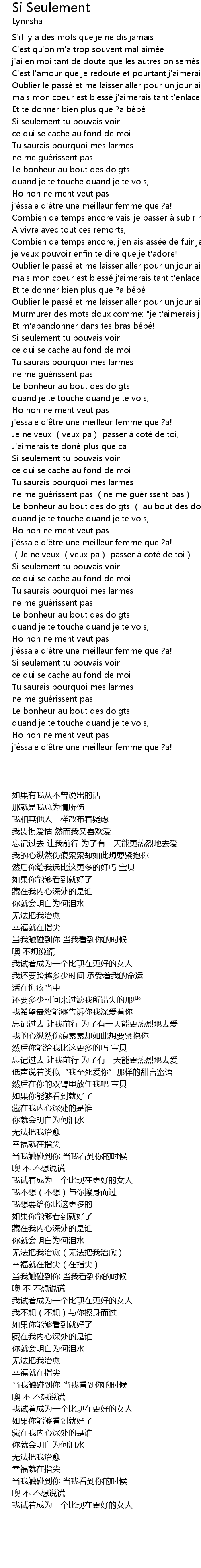 | [01:44.71] | mais mon coeur est blessé j'aimerais tant t'enlacer |