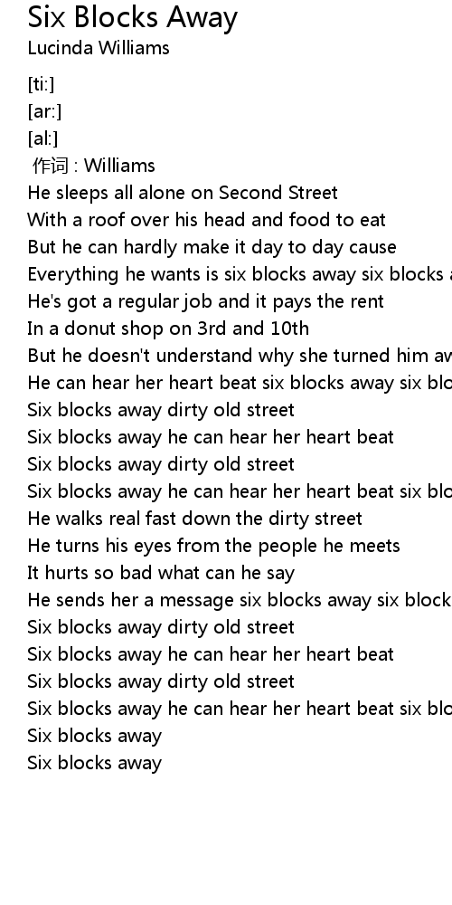 | [00:25.99] | Everything he wants is six blocks away six blocks away |
