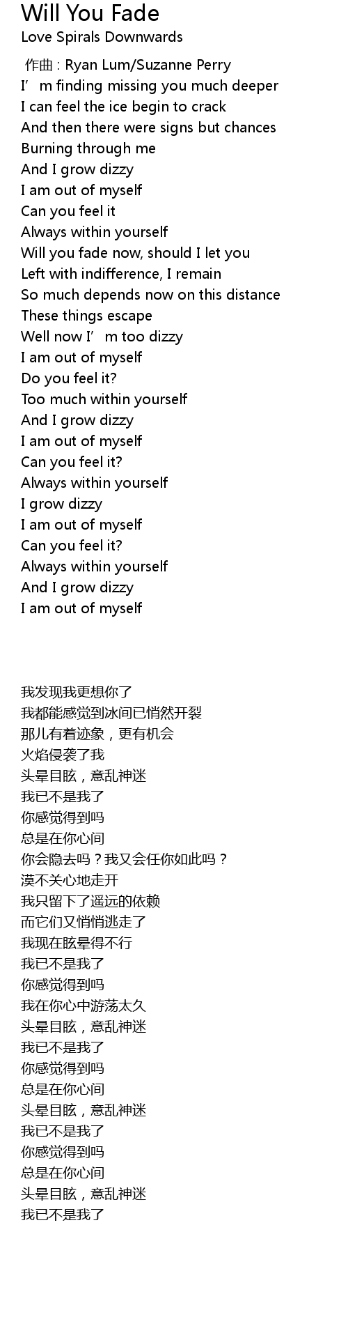 | Song | Will You Fade |