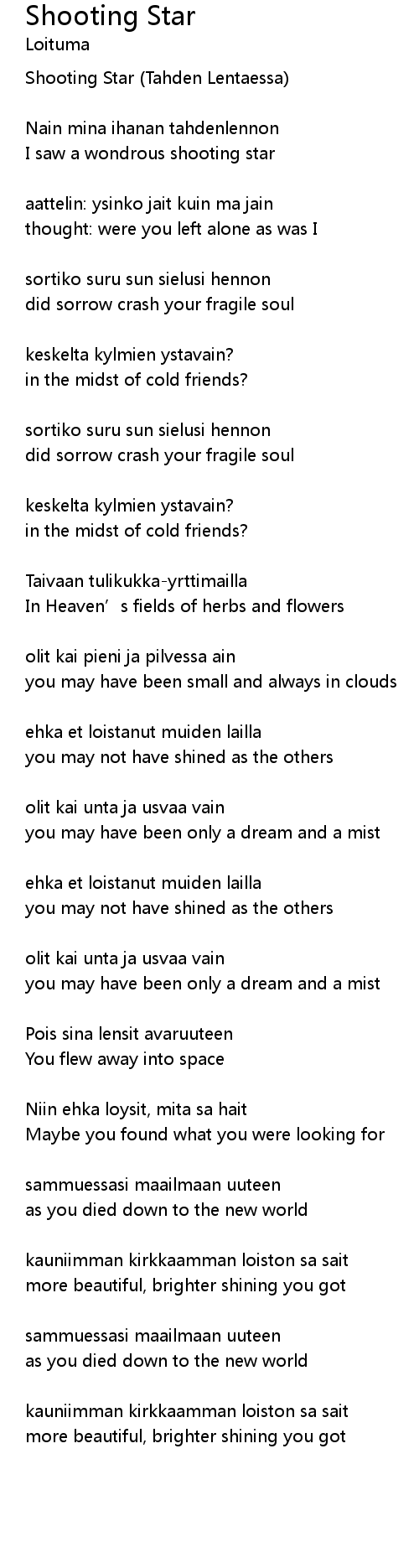 | Shooting Star (Tahden Lentaessa) | |
