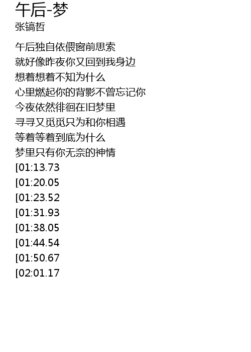 | [02:44.86][01:31.93] | 真心的爱你为何是场梦境 |