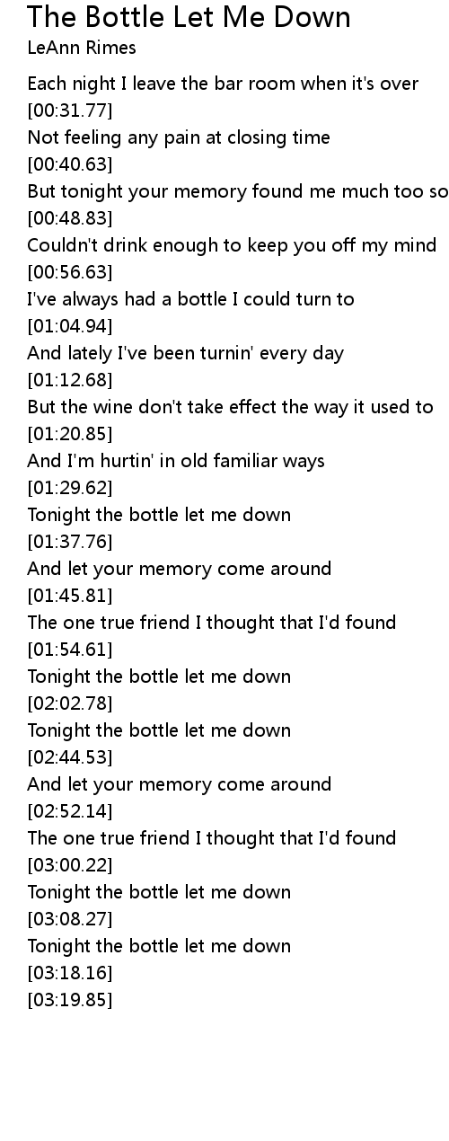 Tonight the bottle let me down |