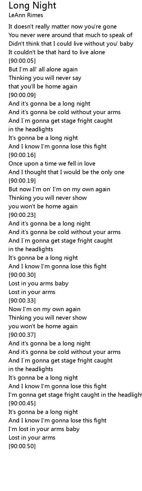 And it's gonna be a long night |