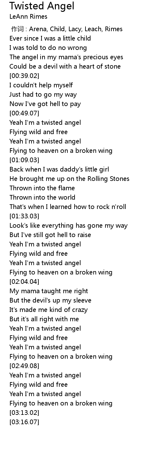 | [01:54.09] | Yeah I' m a twisted angel |