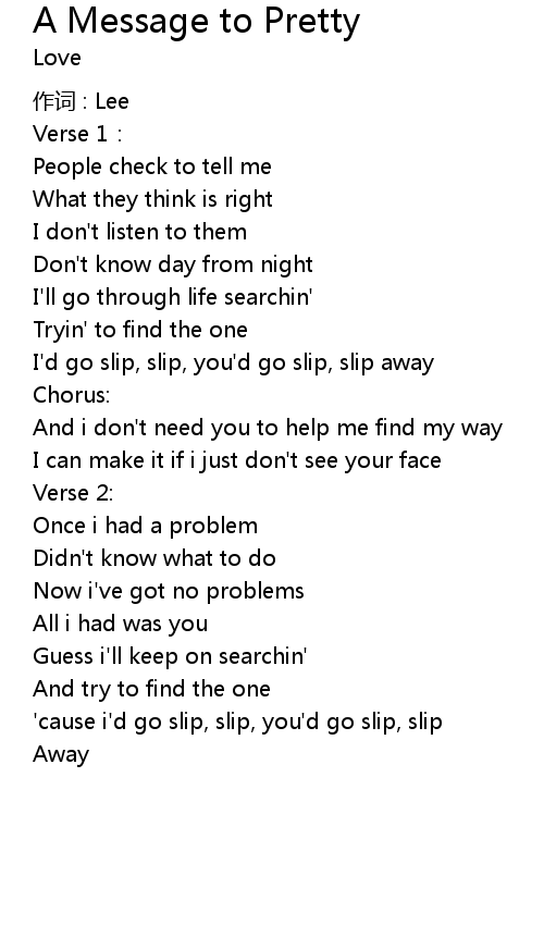| I' d go slip, slip, you' d go slip, slip away | |