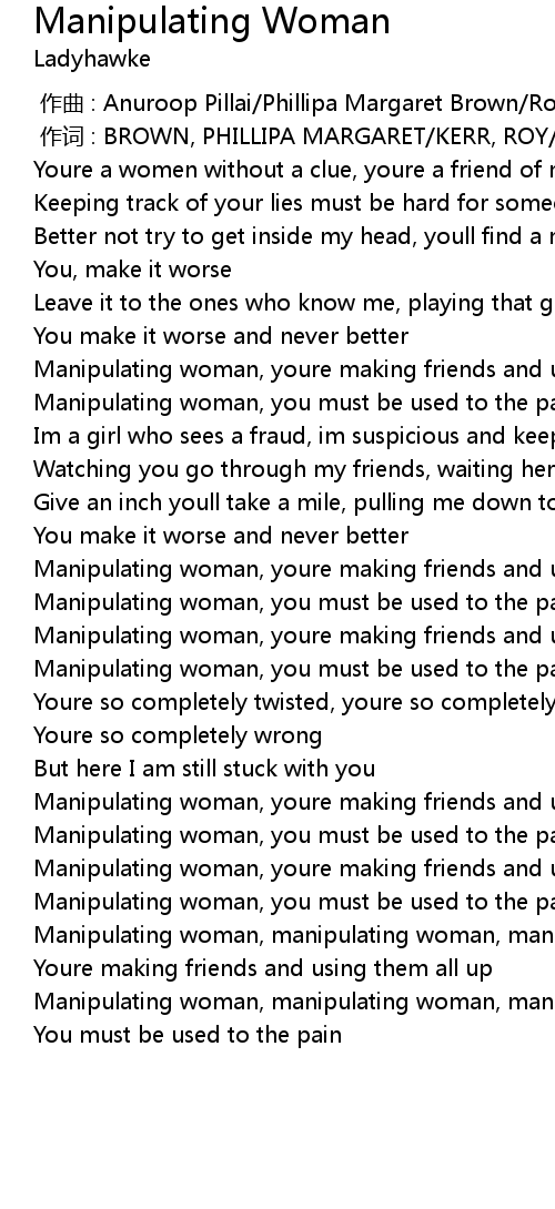 | [02:52.58] | Manipulating woman, manipulating woman, manipulating woman |