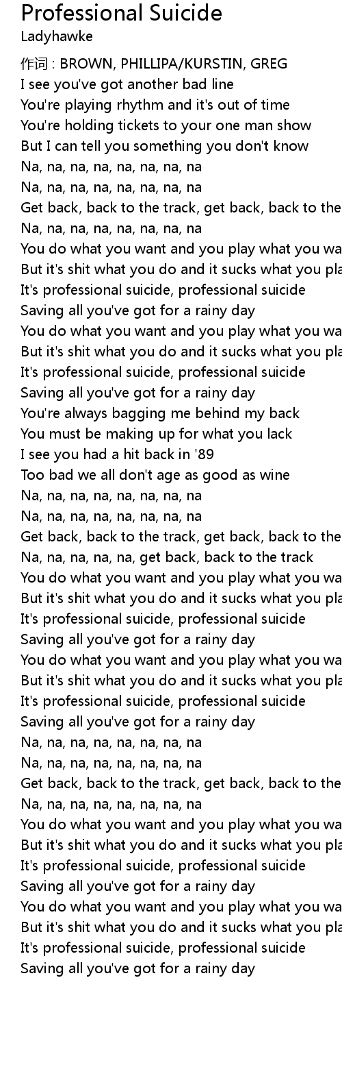 | It' s professional suicide, professional suicide | |