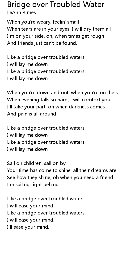 Like a bridge over troubled waters, |