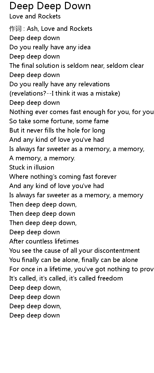 | Deep deep down, | |