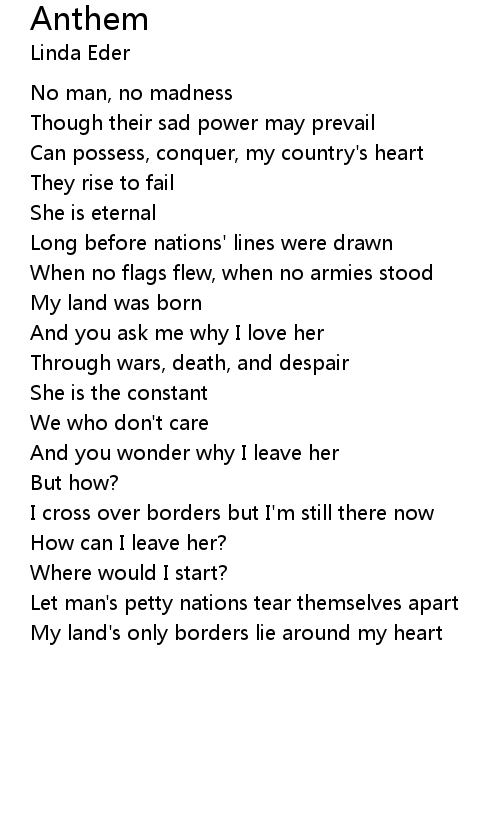 Can possess, conquer, my country's heart |