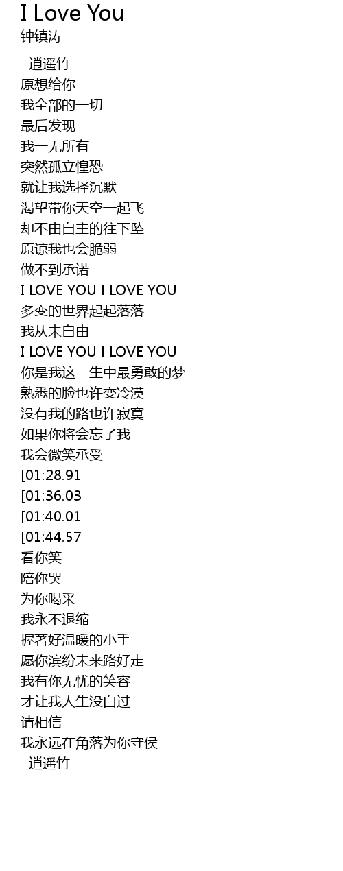 | [02:17.55][01:28.91] | I LOVE YOU I LOVE YOU |
