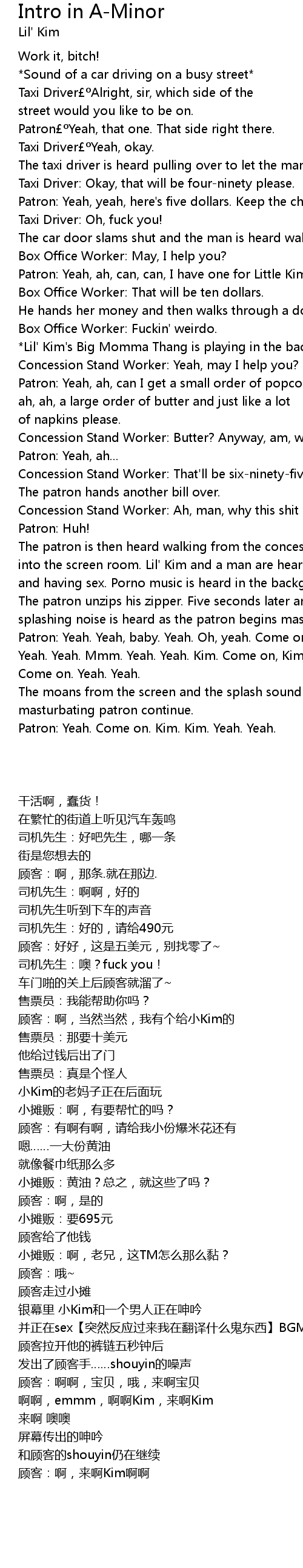 | [01:51.410] | Yeah. Yeah. Mmm. Yeah. Yeah. Kim. Come on, Kim. |