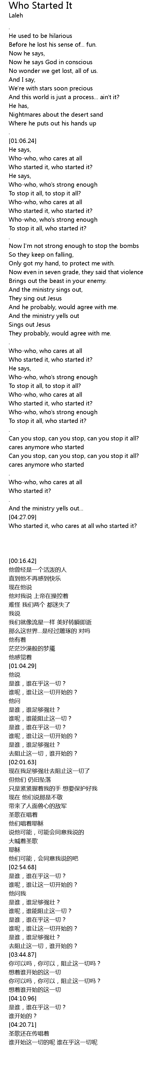 | [03:00.67] | Who started it, who started it? |