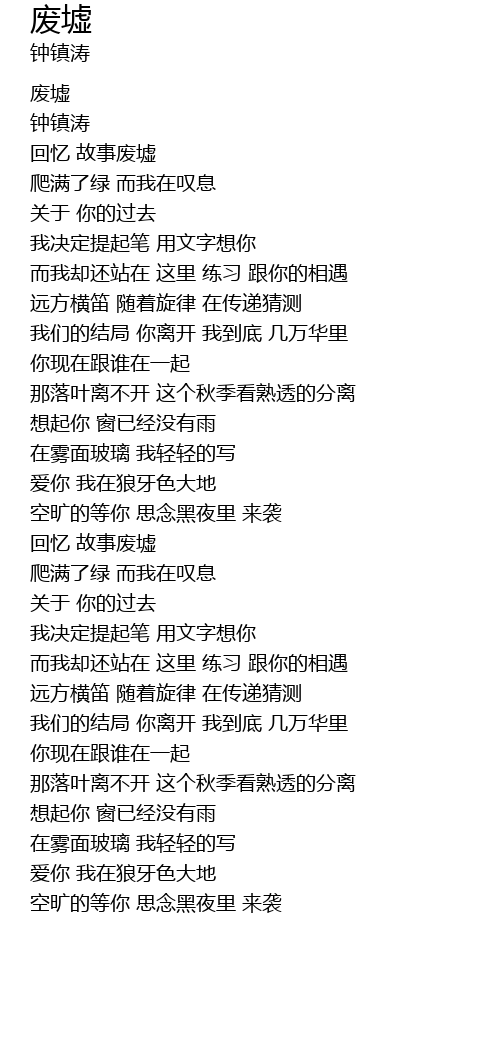 | [00:14.05] | 回忆 故事废墟 |