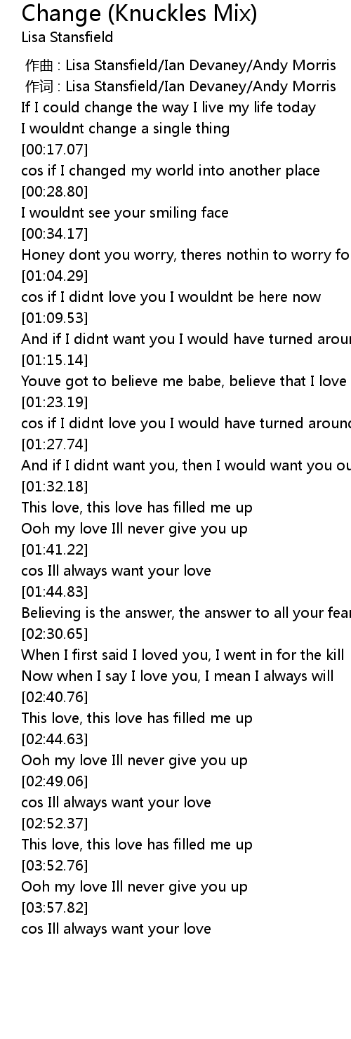 | [00:00.00] | zuo qu : Lisa Stansfield Ian Devaney Andy Morris |