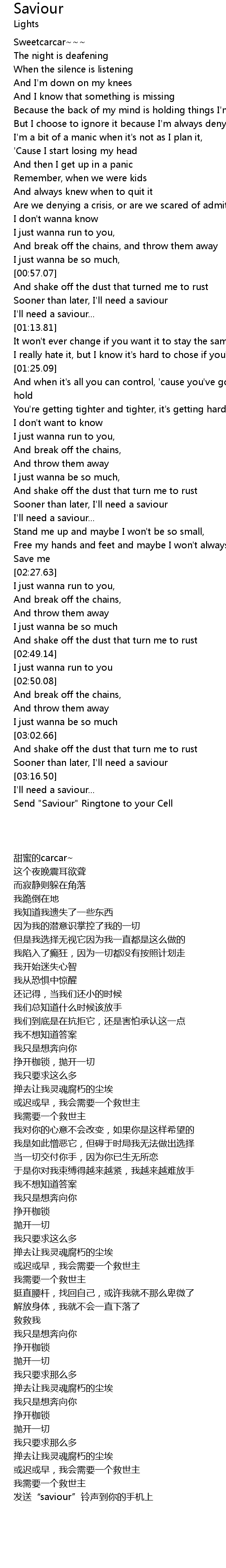 Send "Saviour" Ringtone to your Cell |