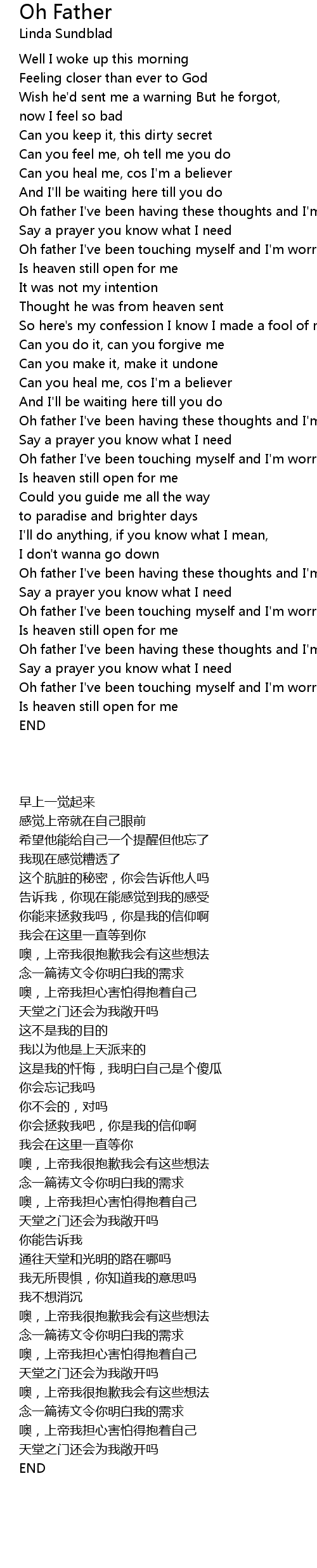 Oh father I've been touching myself and I'm worried |