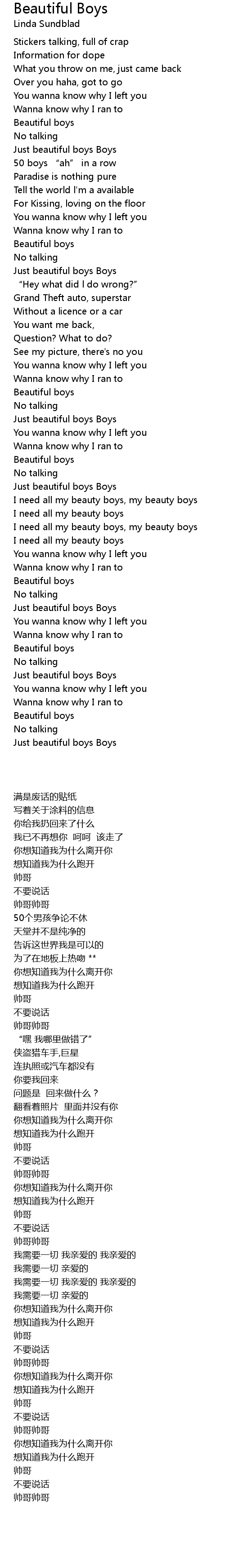 | [02:44.06] | I need all my beauty boys, my beauty boys |