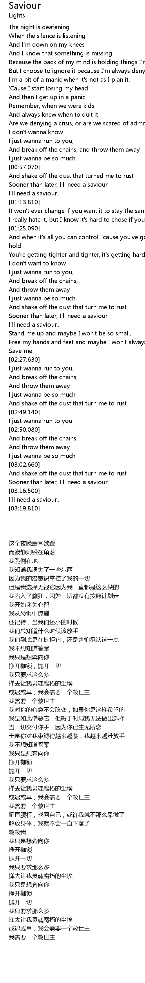 | [03:17.270] | I'll need a saviour... |