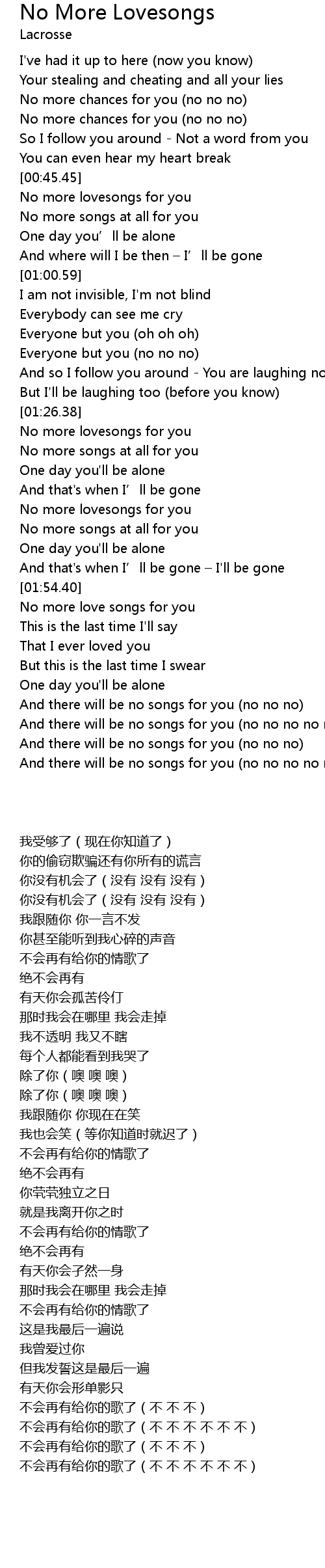 | [02:13.55] | And there will be no songs for you no no no no no no |