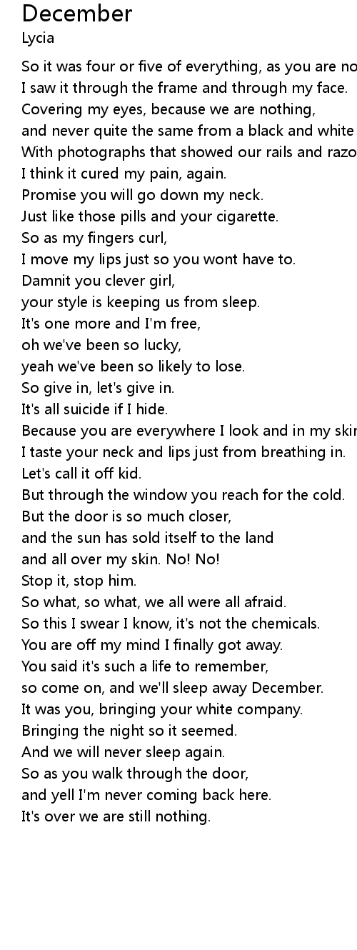 | so come on, and we'll sleep away December. | |
