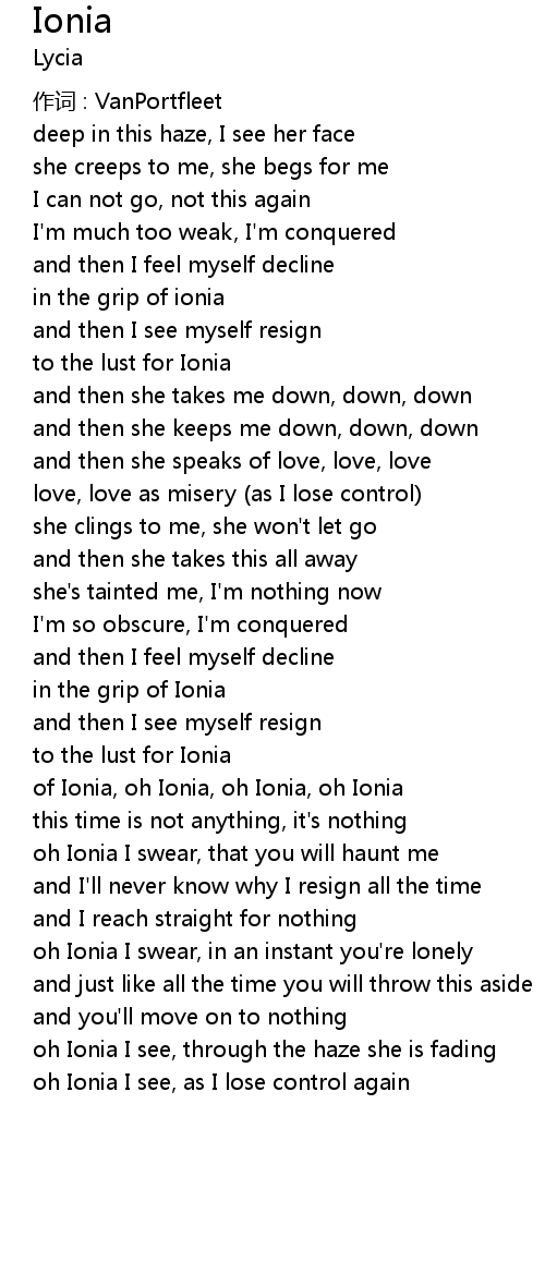 | oh Ionia I see, as I lose control again |
