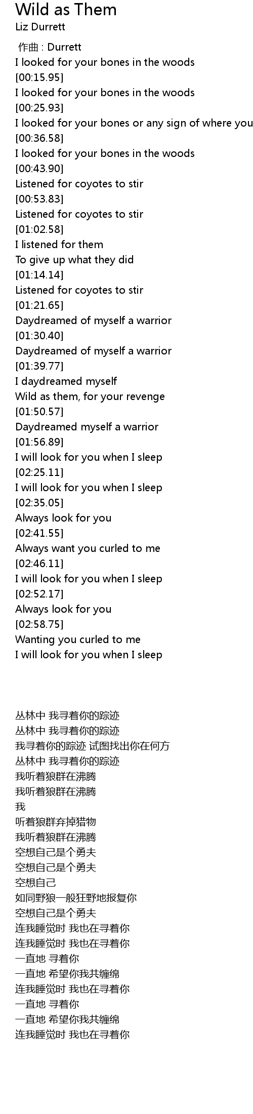 | [00:28.80] | I looked for your bones or any sign of where you were |