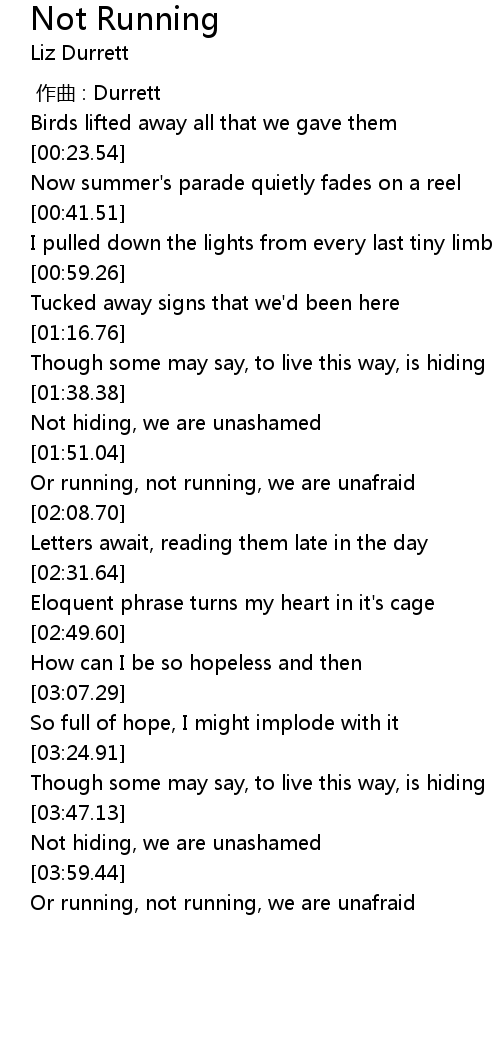 | [01:54.72] | Or running, not running, we are unafraid |