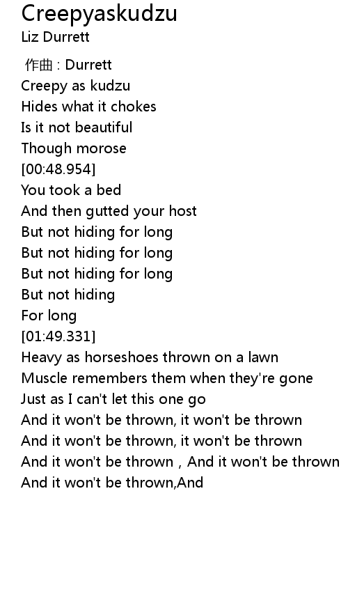 | [00:18.874] | Creepy as kudzu |