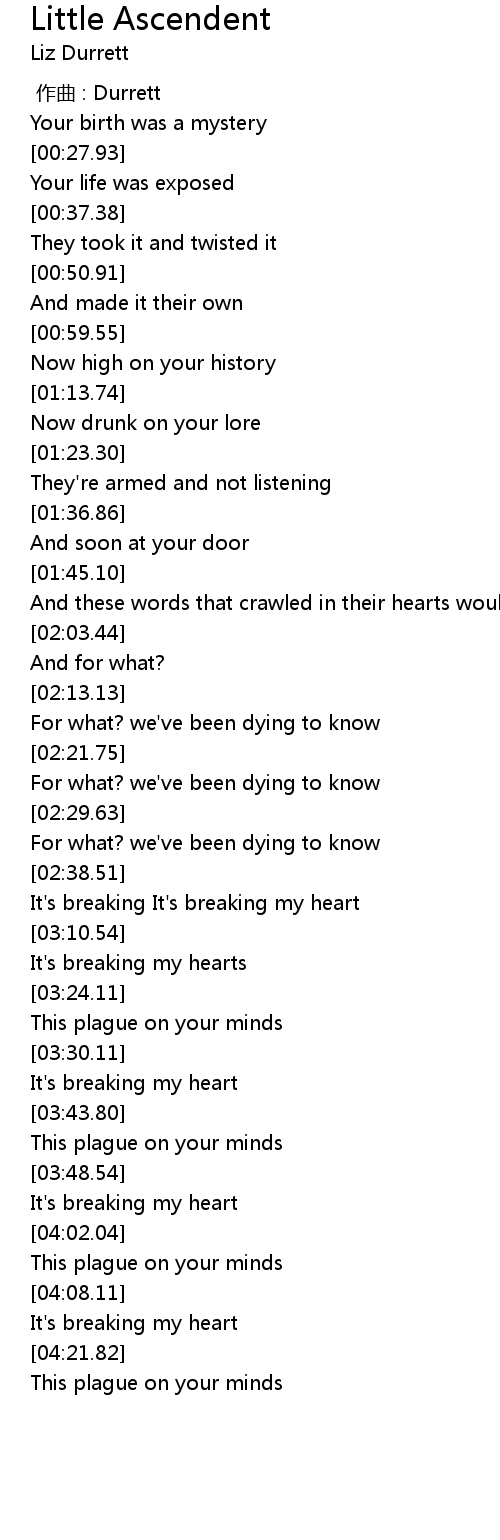 | [03:01.11] | It's breaking It's breaking my heart |