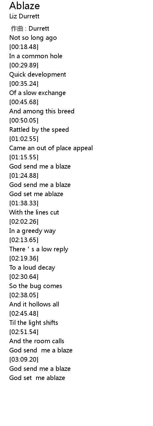 | [03:11.33] | God send me a blaze |