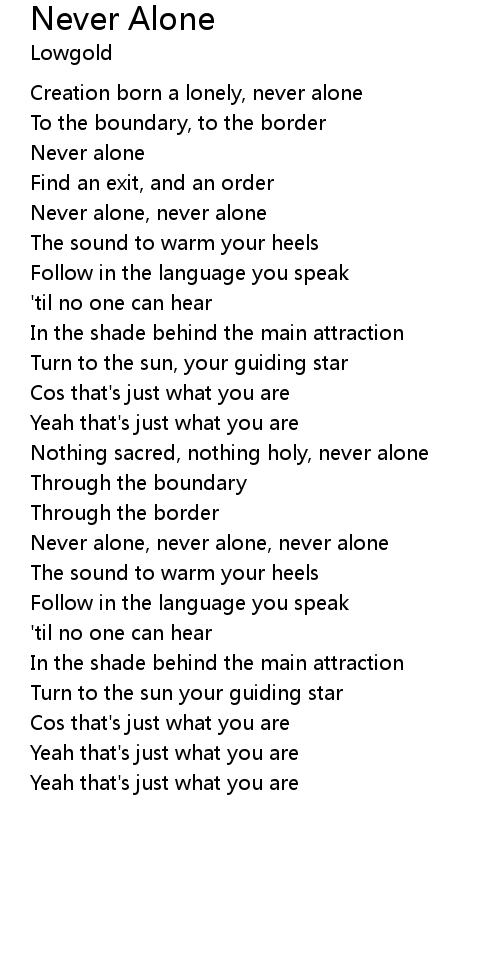 Never alone, never alone, never alone |