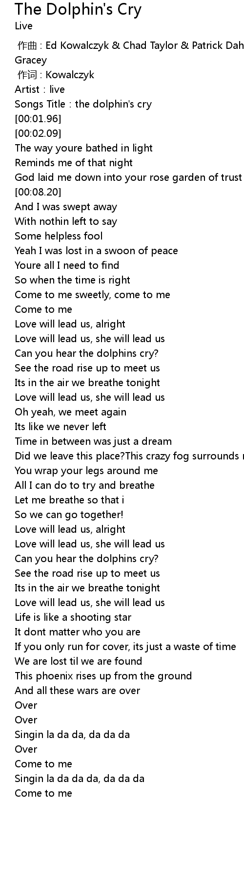 | [00:01.78] | Songs Title: the dolphin' s cry |