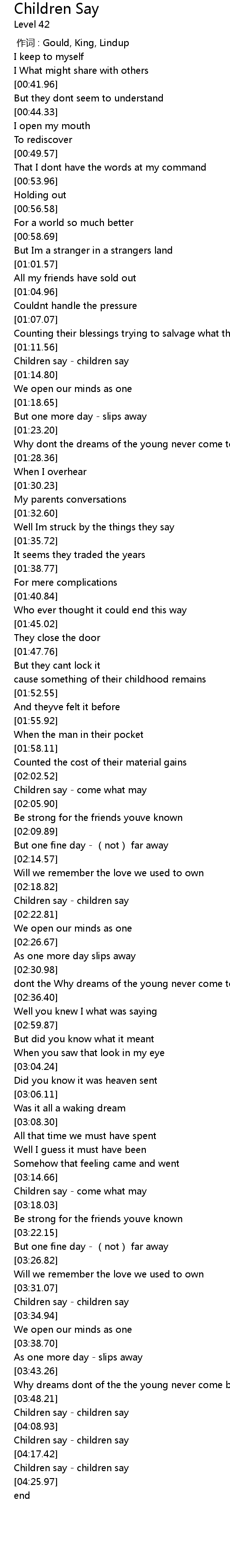 | [04:15.68] | Children say - children say |