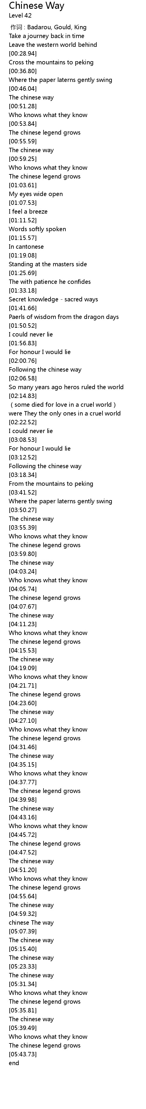 | [04:42.34] | The chinese way |