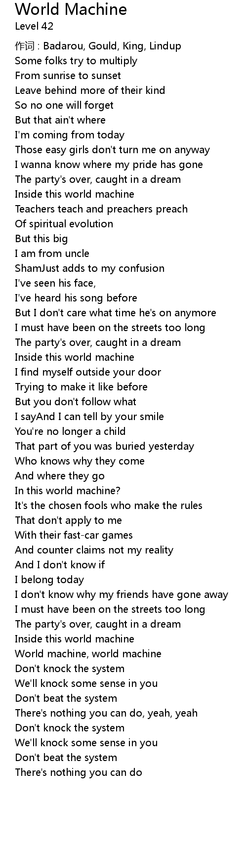 | Song | World Machine |