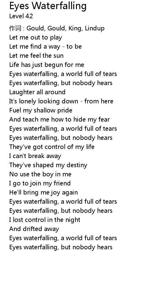 | Eyes waterfalling, but nobody hears |