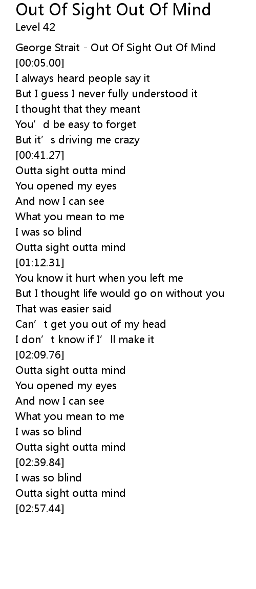 | [00:00.00] | George Strait Out Of Sight Out Of Mind |