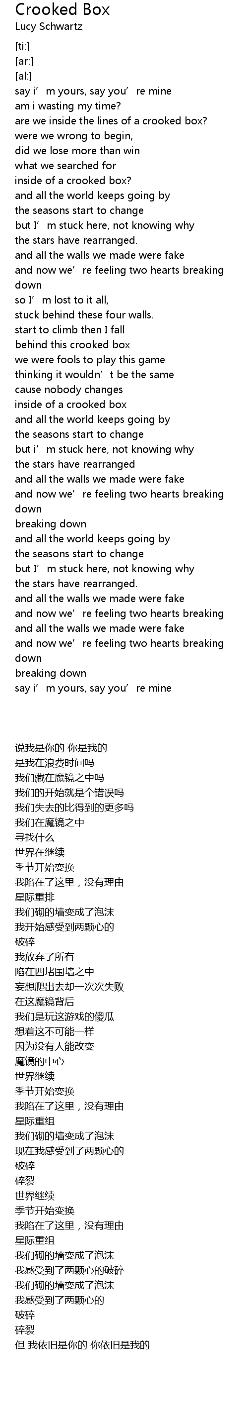 | [00:22.37] | are we inside the lines of a crooked box? |