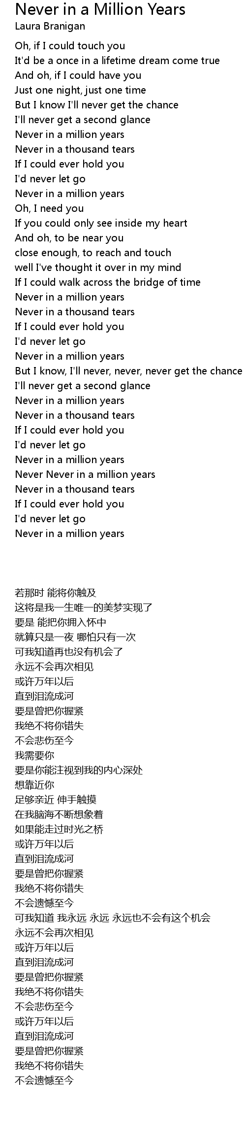 Never in a thousand tears |