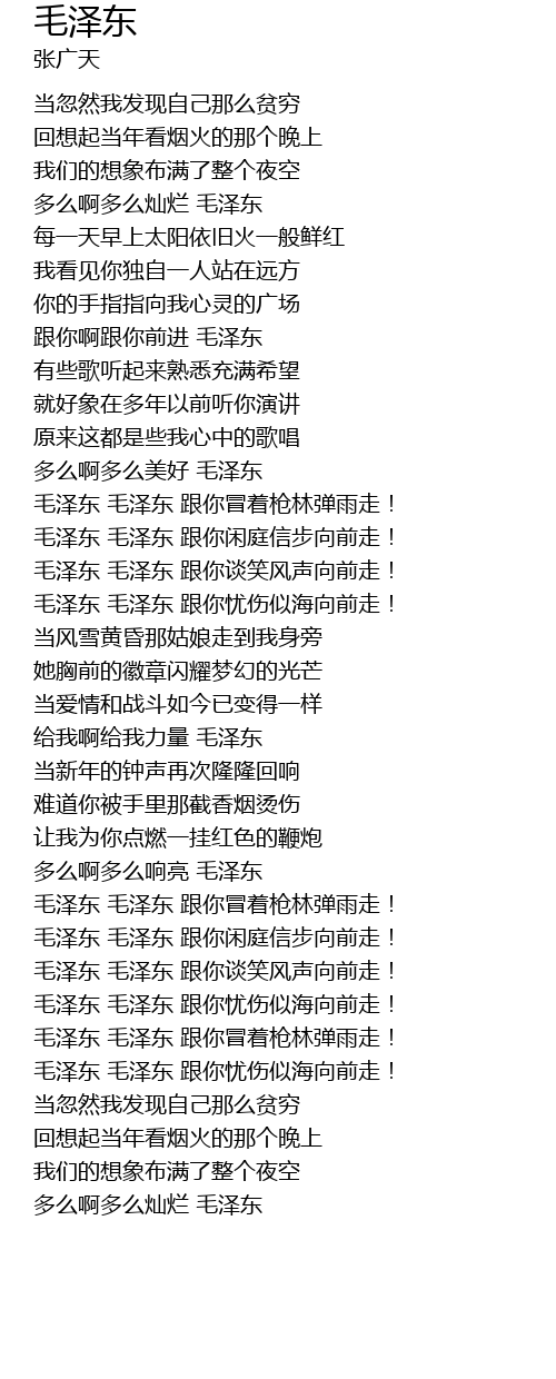| [01:49.750] | mao ze dong mao ze dong gen ni xian ting xin bu xiang qian zou! |