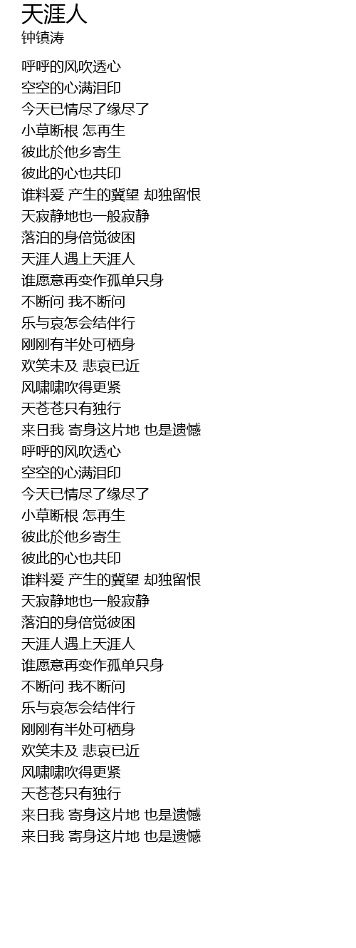 | [02:49.33] | tiān yá rén yù shàng tiān yá rén |