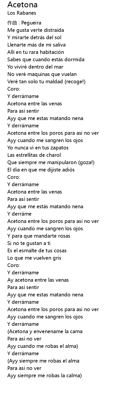 | Ay acetona entre las venas | |
