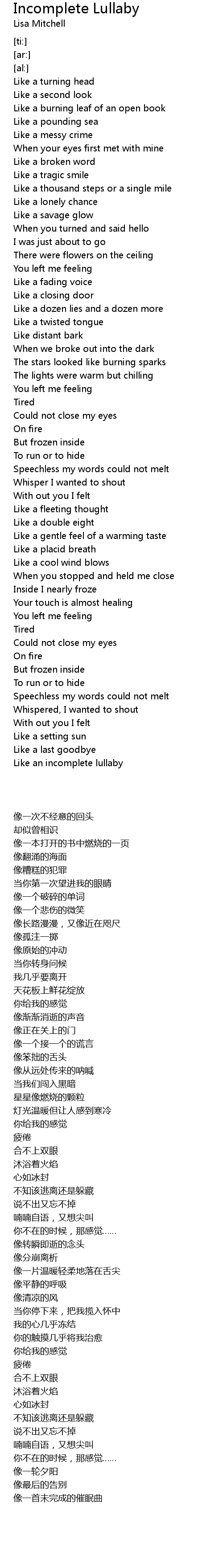 Like an incomplete lullaby |