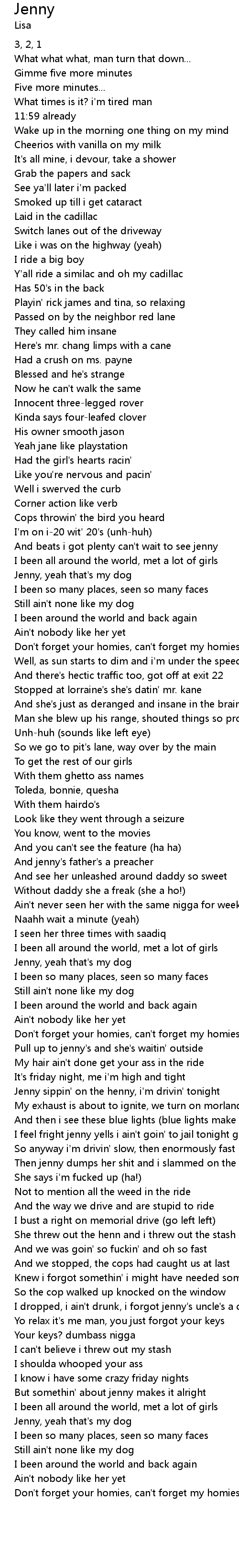 | I dropped, i ain't drunk, i forgot jenny's uncle's a cop | |