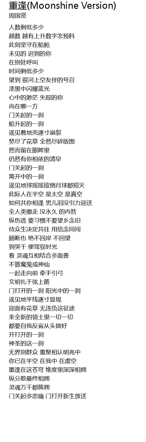 | Song | 重逢(Moonshine Version) |