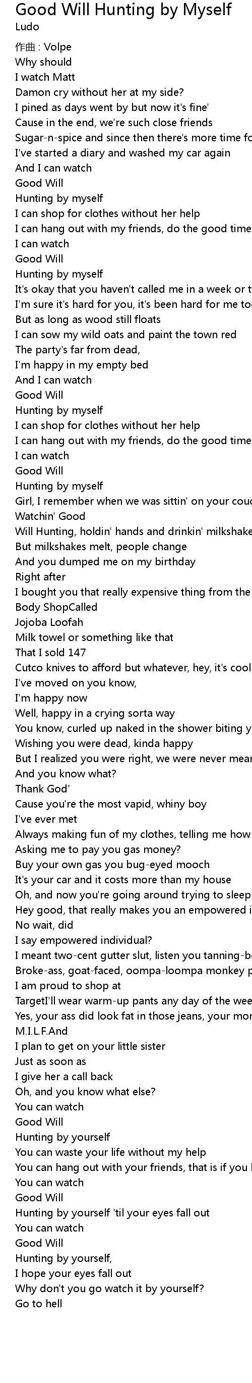 | Hunting by yourself, | |