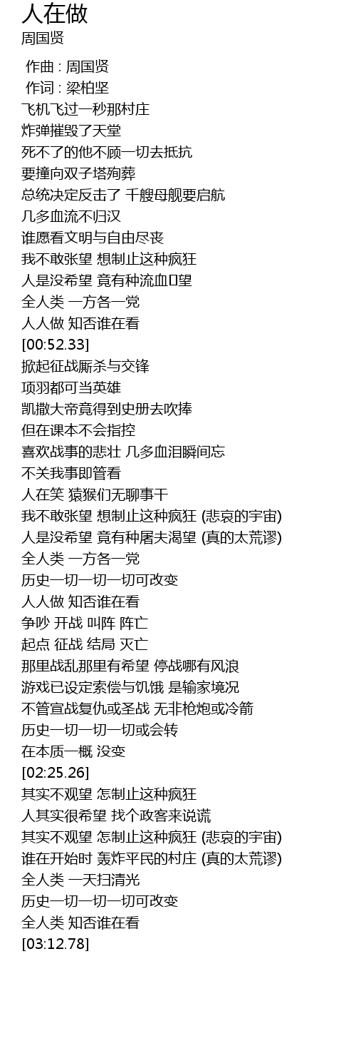 | [01:42.16] | 人人做 知否谁在看 |