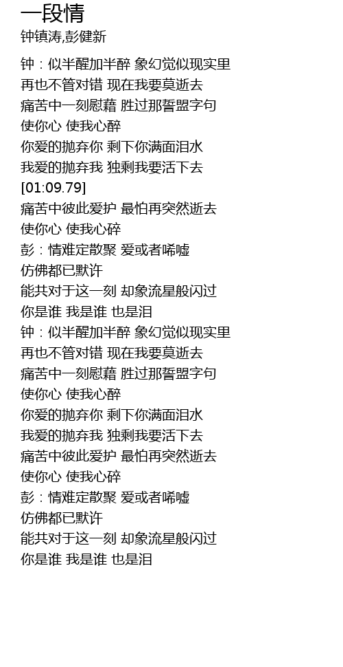 | [01:39.32] | 你是谁 我是谁 也是泪 |