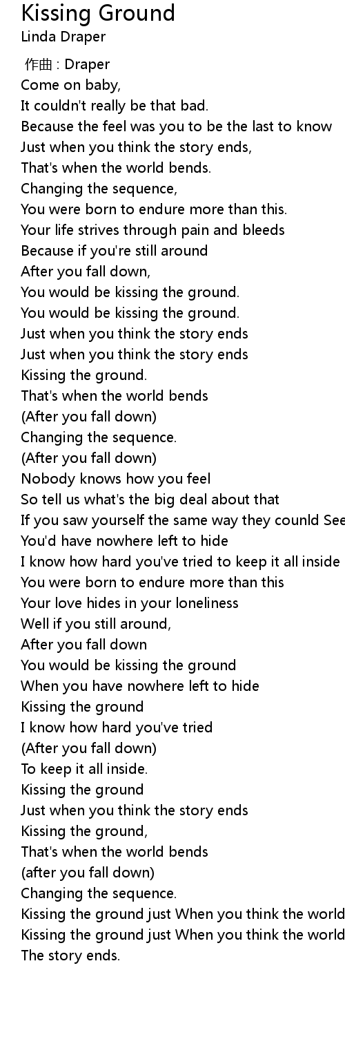 | [03:36.160] | Kissing the ground just When you think the world bends |